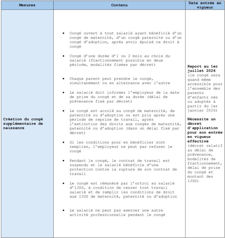 Ci-après les principales mesures paie et RH mises en place, avec leurs dates d’entrée en vigueur.